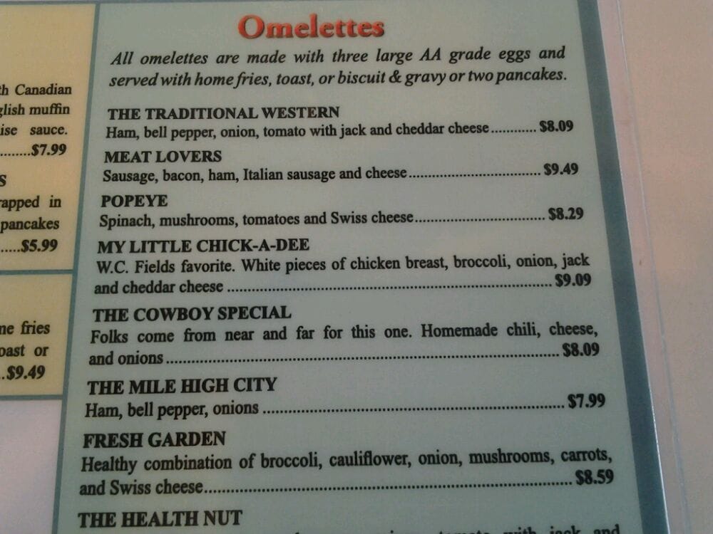Served with / ham, bacon, sausage, eggs, Choice of home fries or hashbrowns